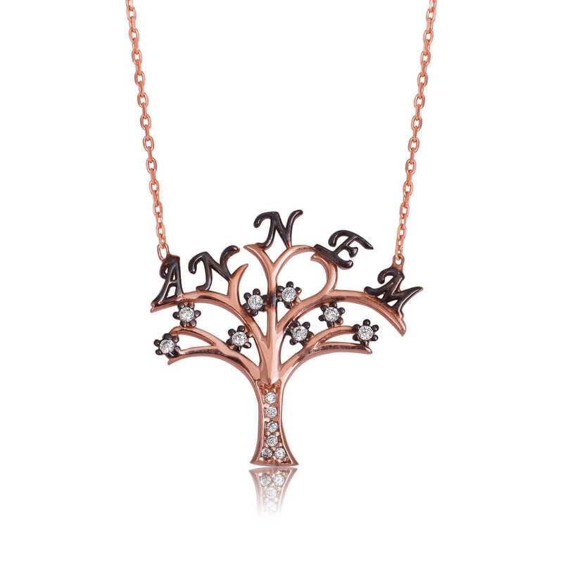 925 Ayar Gümüş Annem Yazılı Hayat Ağacı Kolye