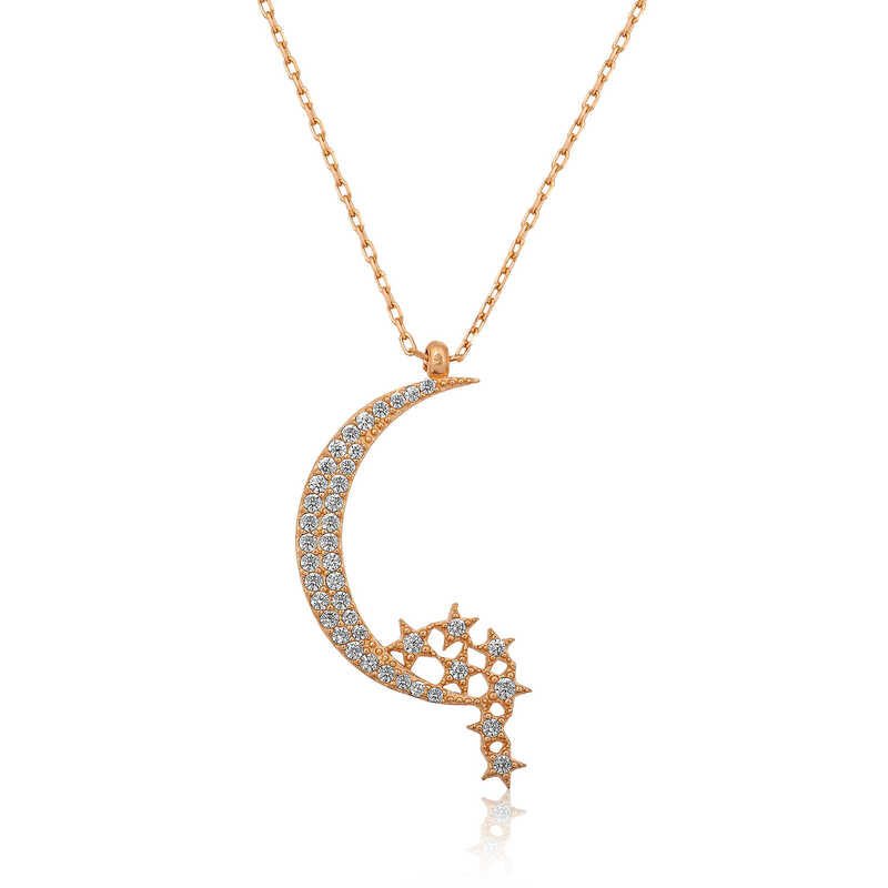 925 Ayar Gümüş Ay Yıldızlı Kadın Gümüş Kolye