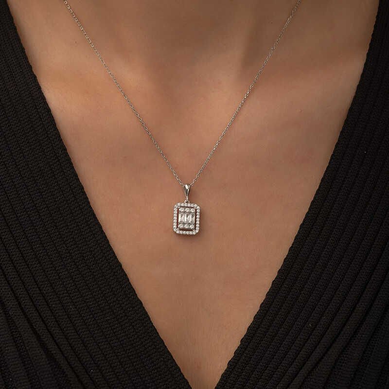 925 Ayar Gümüş Baget Taşlı Kadın Gümüş Kolye