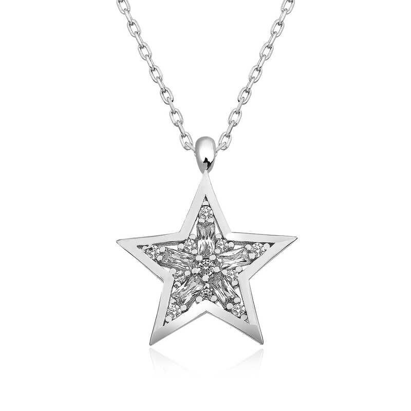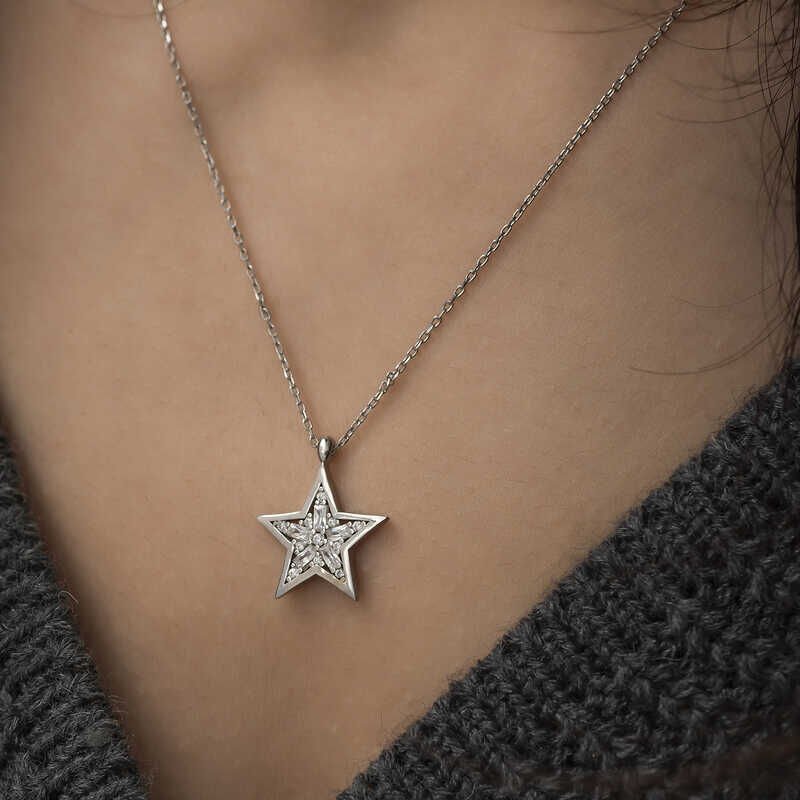 925 Ayar Gümüş Baget Taşlı Yıldız Kadın Gümüş Kolye