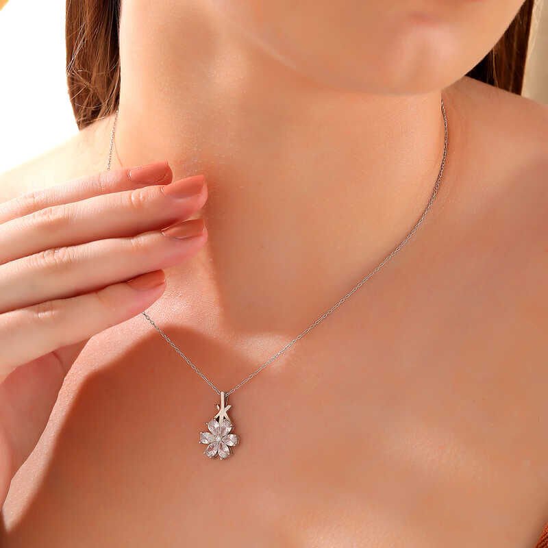 925 Ayar Gümüş Beyaz Sevgi Çiçeği Kadın Kolye
