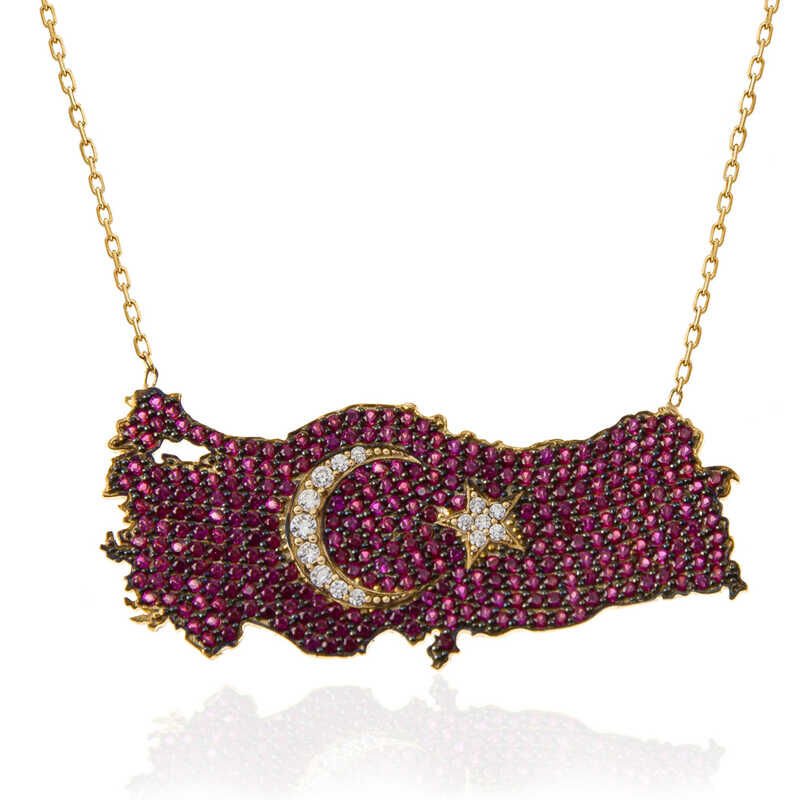925 Ayar Gümüş Gold Ay Yıldız Türkiye Haritası Kadın Kolye