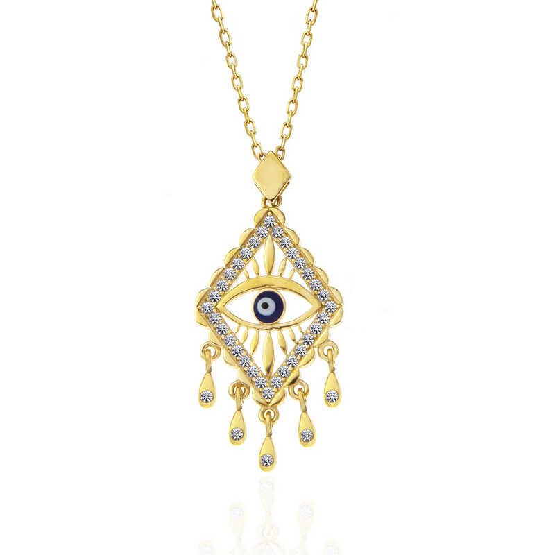 925 Ayar Gümüş Gold Nazarlı Göz Kadın Kolye