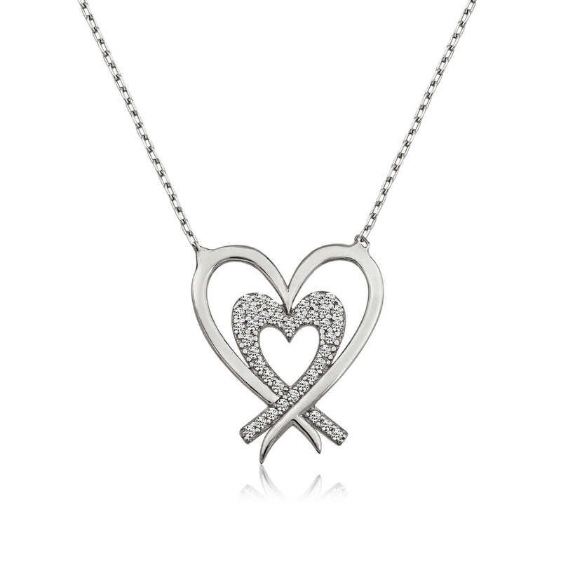 925 Ayar Gümüş İki Kalp Kadın Gümüş Kolye