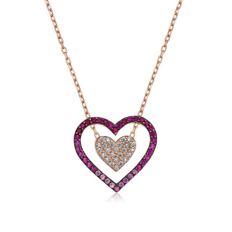 925 Ayar Gümüş İki Kalp Kadın Gümüş Kolye