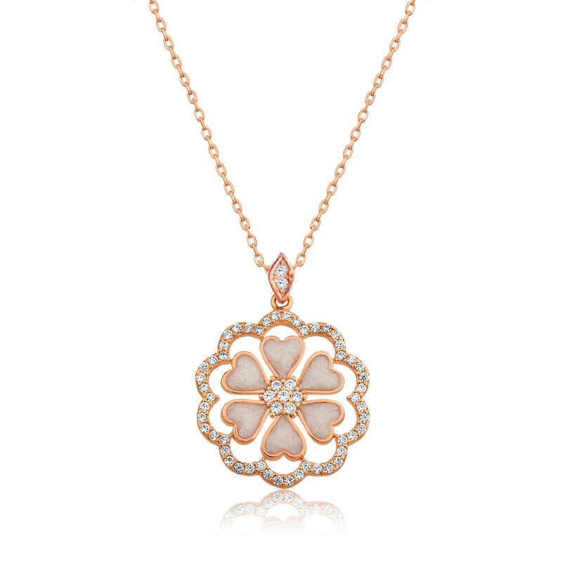 925 Ayar Gümüş Kalp Çiçek Kadın Gümüş Kolye