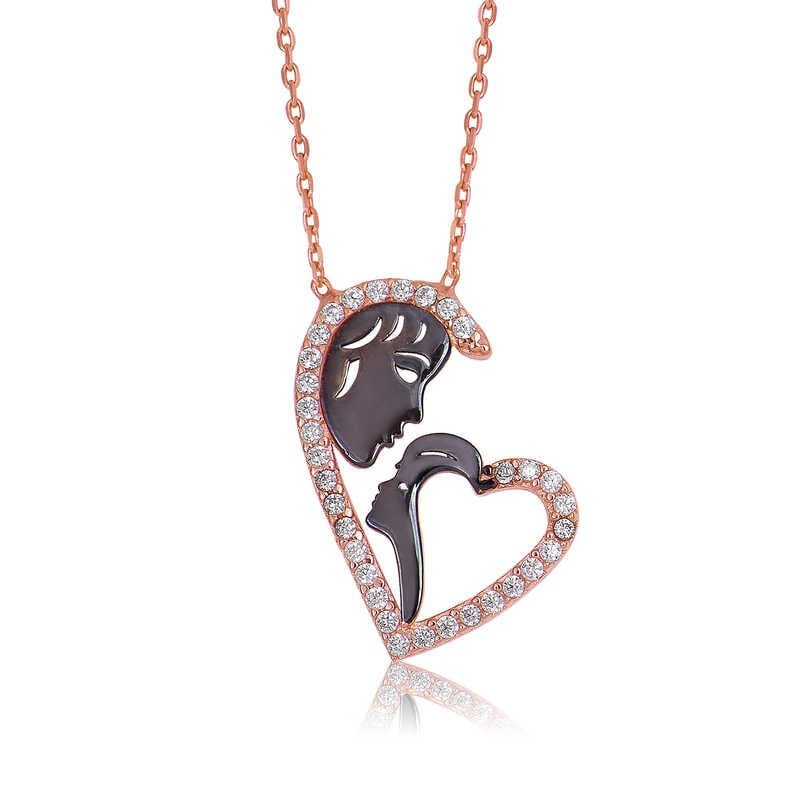 925 Ayar Gümüş Kalpli Anne Çocuk Kolyesi