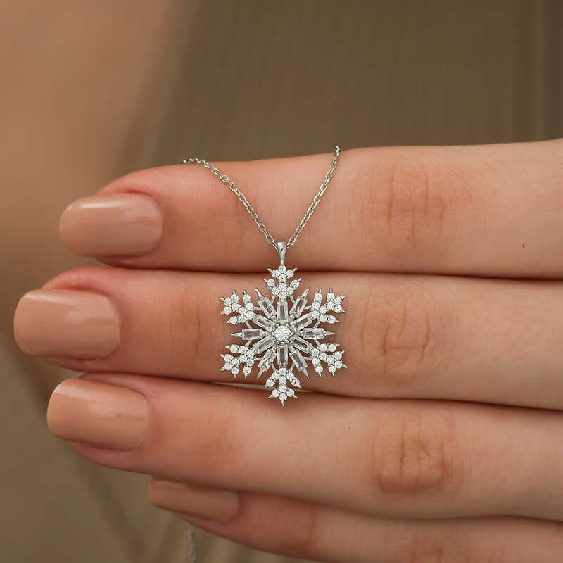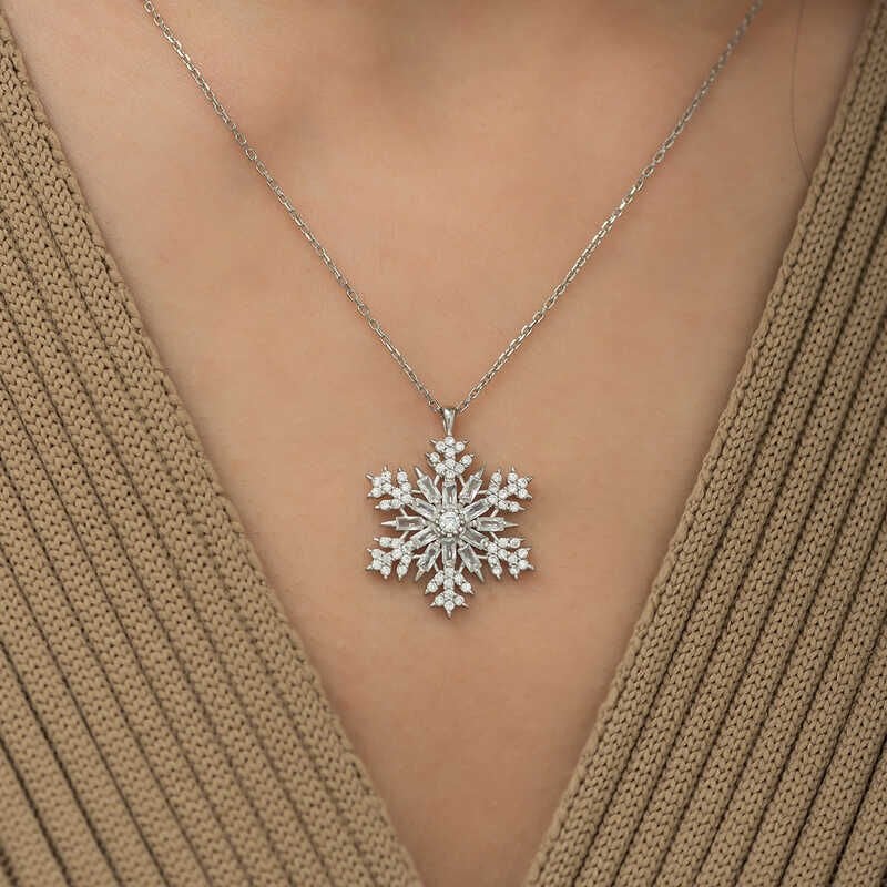 925 Ayar Gümüş Kar Tanesi Kadın Gümüş Kolye