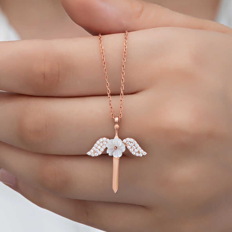 925 Ayar Gümüş Manolya Çiçeği Melek Kadın Kolye