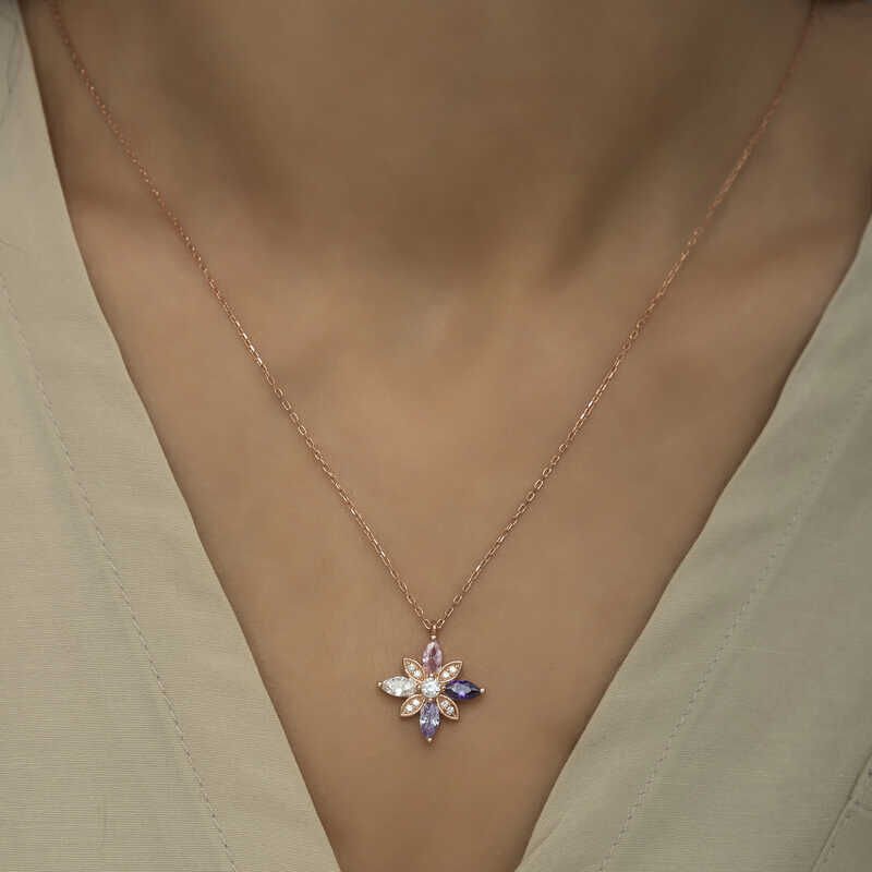 925 Ayar Gümüş Mix Taşlı Umut Çiçeği Gümüş Kolye