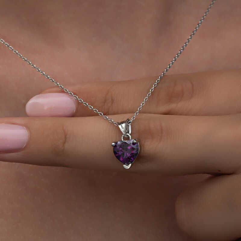 925 Ayar Gümüş Mor Taşlı Kalpli Kadın Kolye