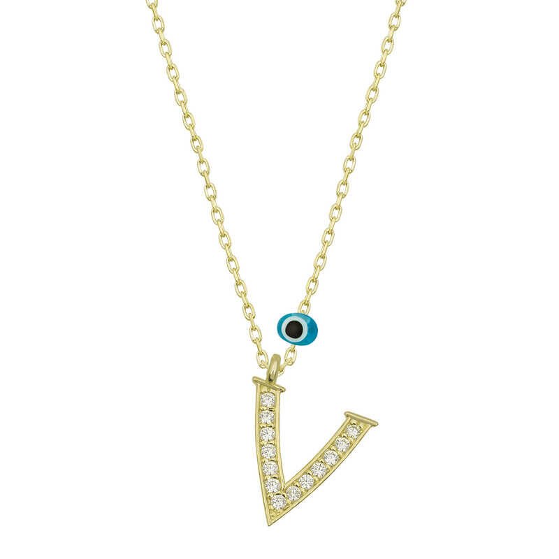 925 Ayar Gümüş Nazar Gold V Harfi Kadın Gümüş Kolye