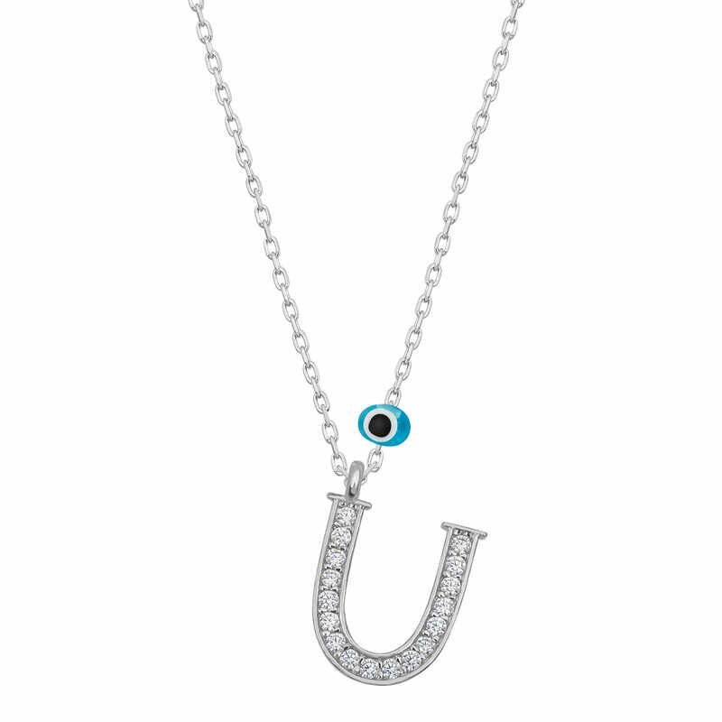 925 Ayar Gümüş Nazar Rodyum U Harfi Kadın Gümüş Kolye