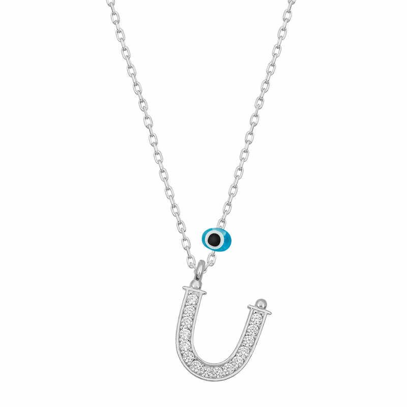 925 Ayar Gümüş Nazar Rodyum Ü Harfi Kadın Gümüş Kolye