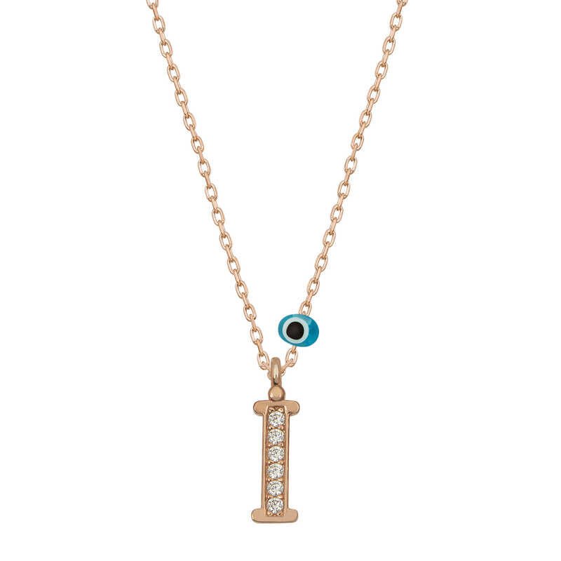 925 Ayar Gümüş Nazar Rose İ Harfi Kadın Gümüş Kolye