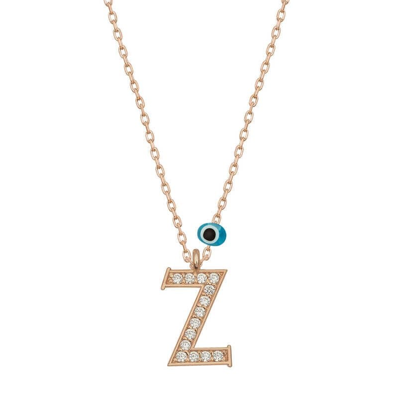 925 Ayar Gümüş Nazar Rose Z Harfi Kadın Gümüş Kolye