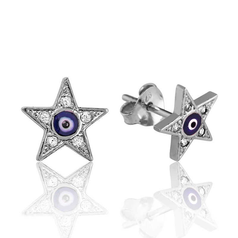 925 Ayar Gümüş Nazarlı Yıldız Çivili Küpe