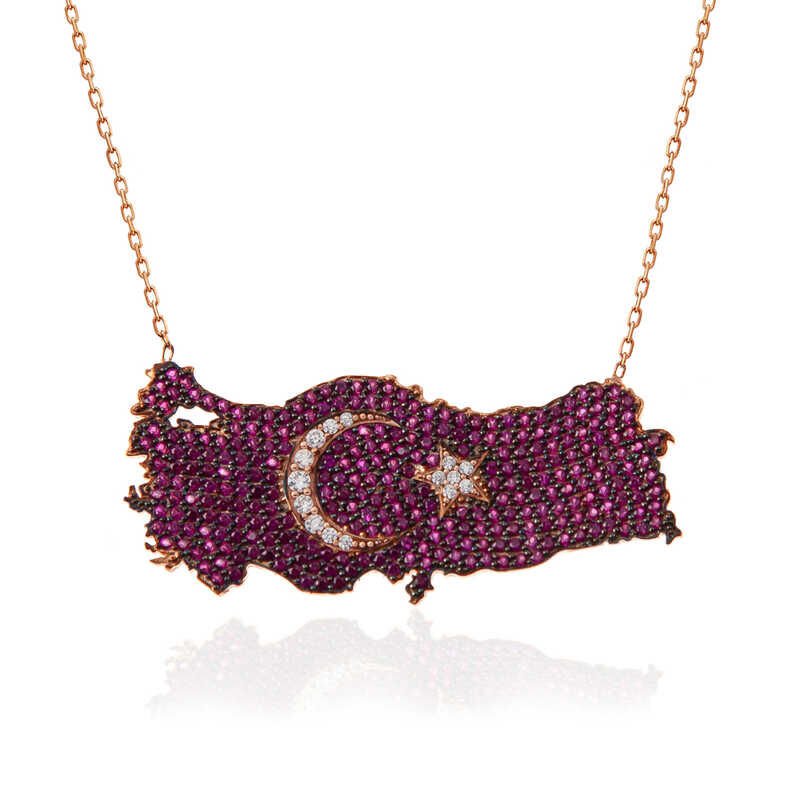 925 Ayar Gümüş Rose Ay Yıldız Türkiye Haritası Kadın Kolye