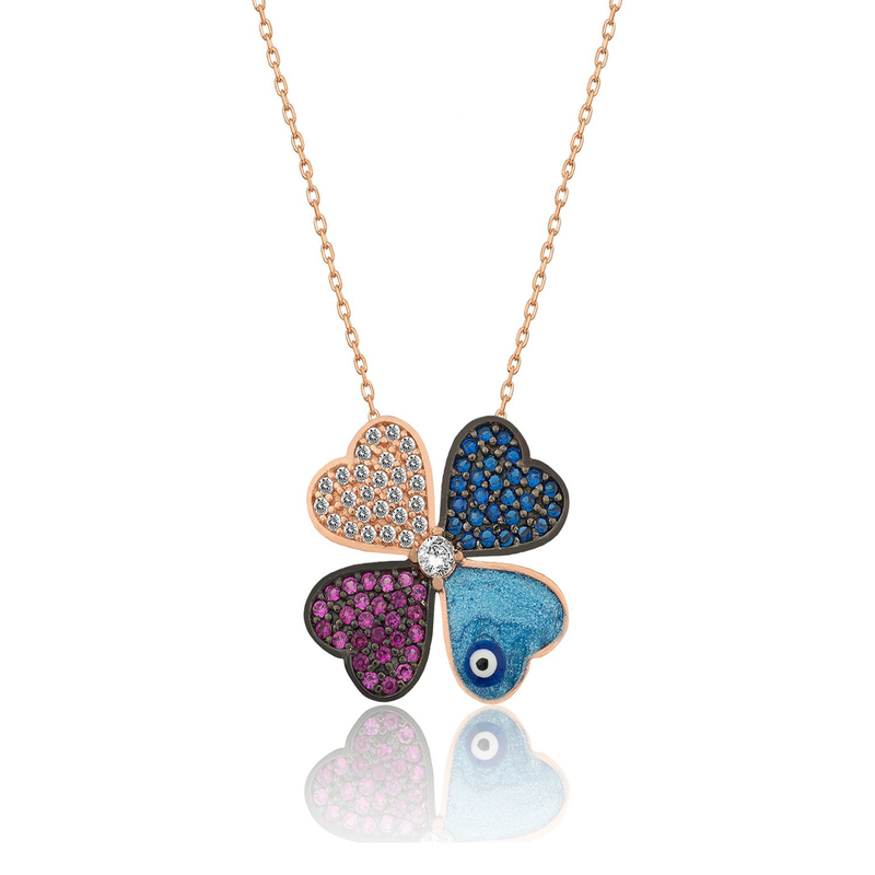 925 Ayar Gümüş Rose Dört Yapraklı Yonca Kadın Kolye
