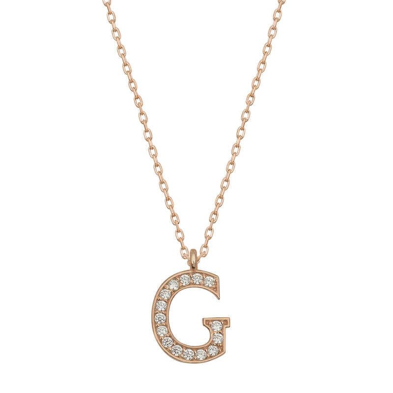 925 Ayar Gümüş Rose G Harfi Kadın Gümüş Kolye