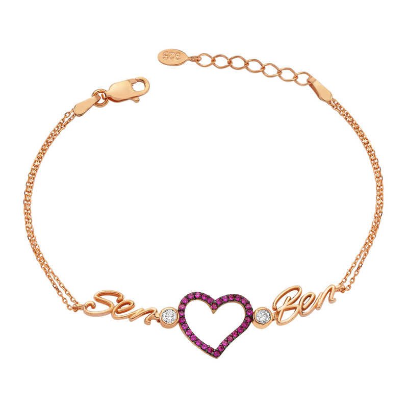 925 Ayar Gümüş Rose Kalpli Sen Ben Bileklik