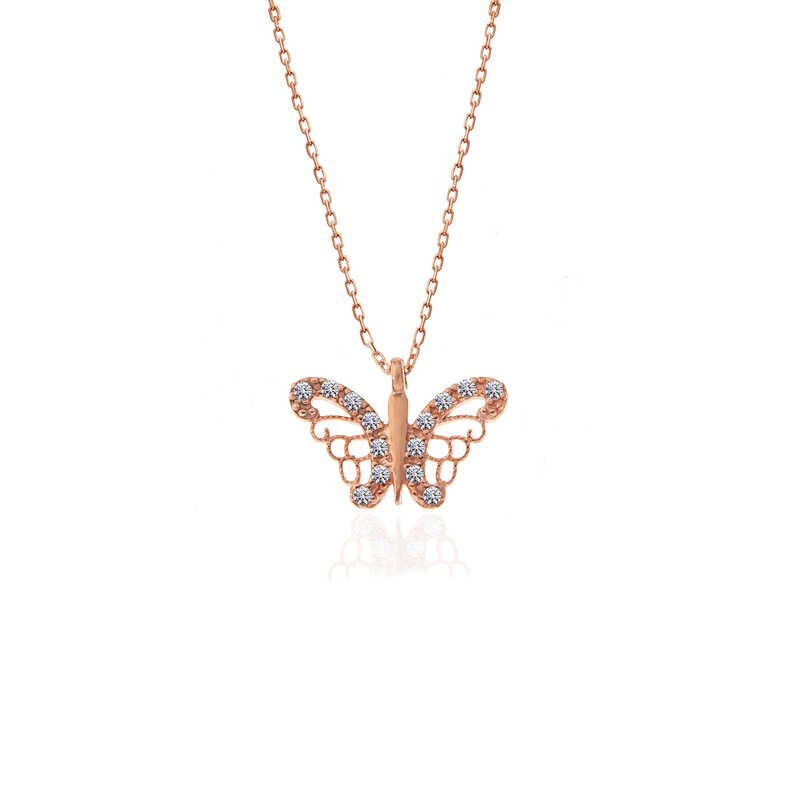 925 Ayar Gümüş Rose Kelebek Kadın Gümüş Kolye