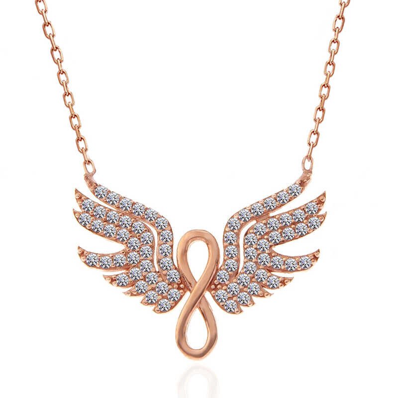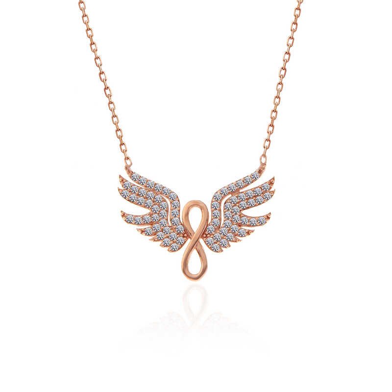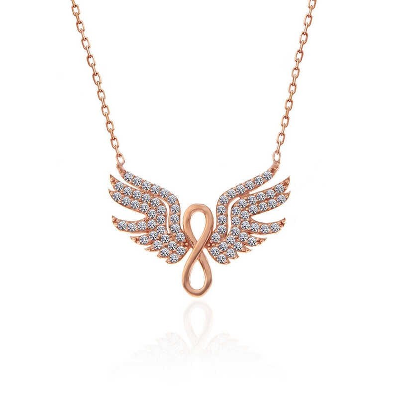 925 Ayar Gümüş Rose Melek Kanadı Sonsuzluk Kadın Kolye