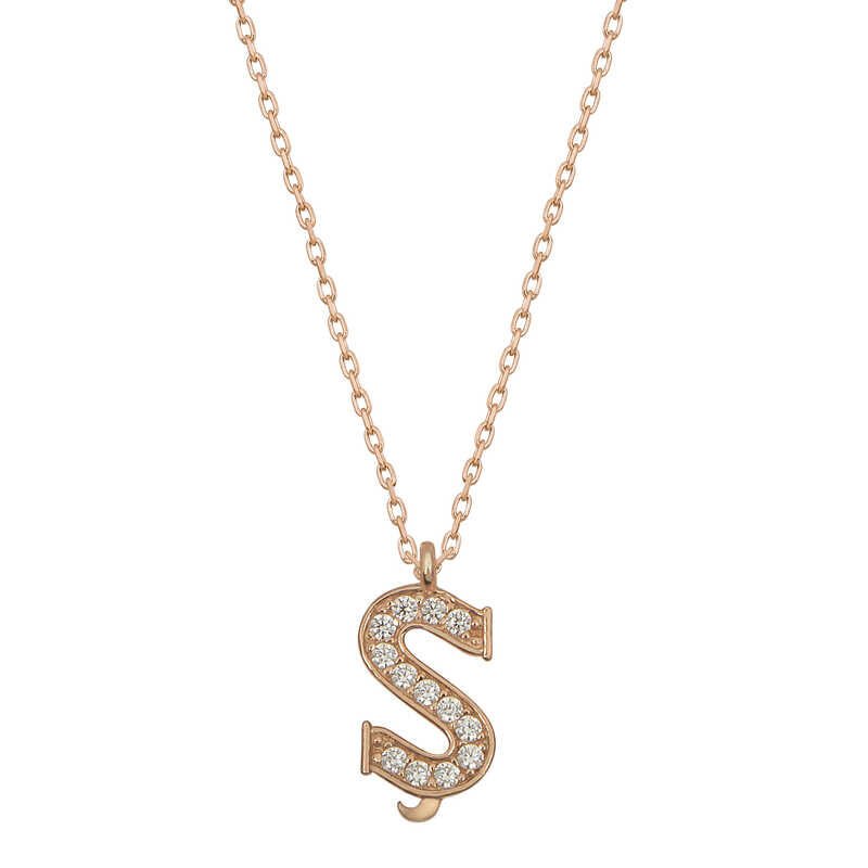 925 Ayar Gümüş Rose Ş Harfi Kadın Gümüş Kolye
