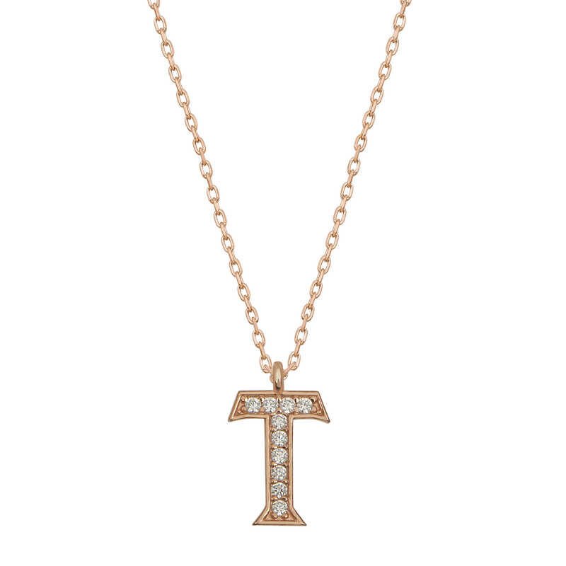 925 Ayar Gümüş Rose T Harfi Kadın Gümüş Kolye T6745