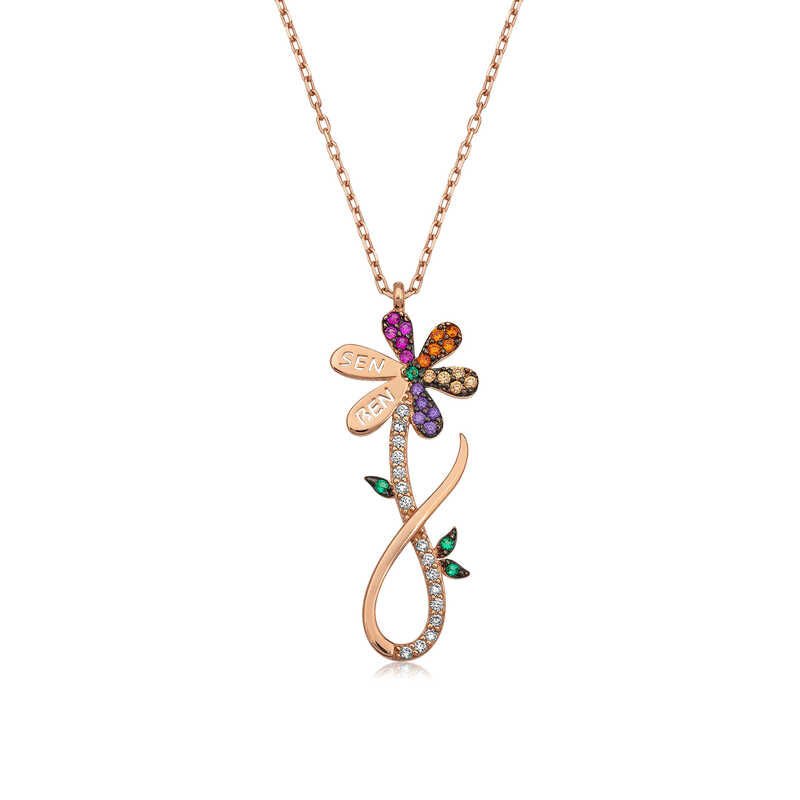 925 Ayar Gümüş Sen Ben Yazılı Papatya Kolye