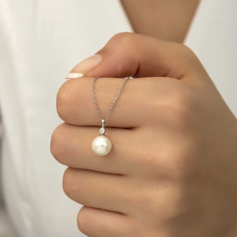 925 Ayar Gümüş Yuvarlak İnci Kadın Gümüş Kolye