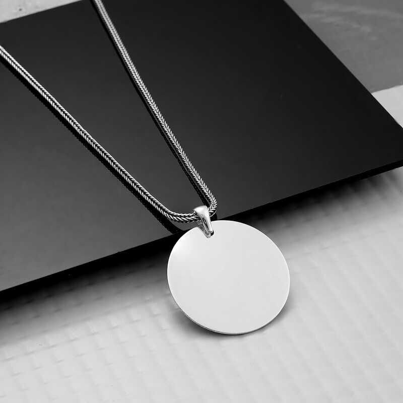 925 Ayar Gümüş Yuvarlak Plaka Kolye