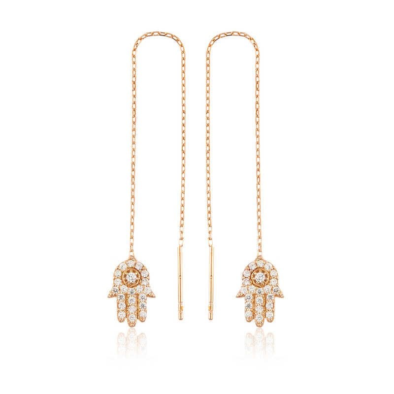 925 Ayar Gümüş Zincirli Fatma Ana Eli Küpe
