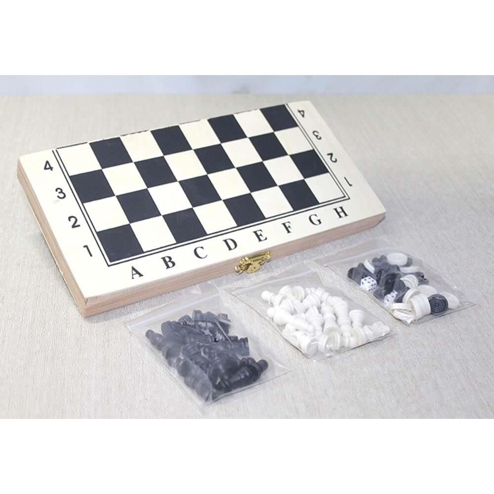 Ahşap Kutulu Satranç ve Tavla Seti
