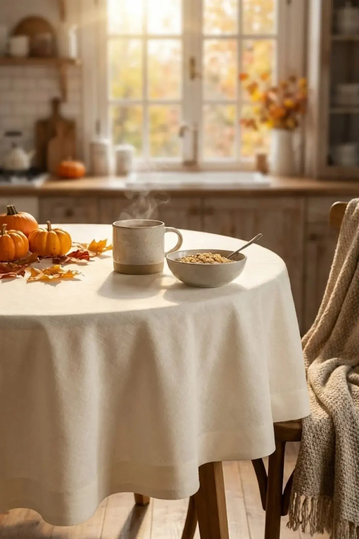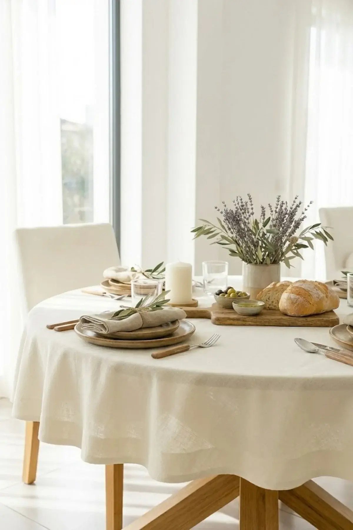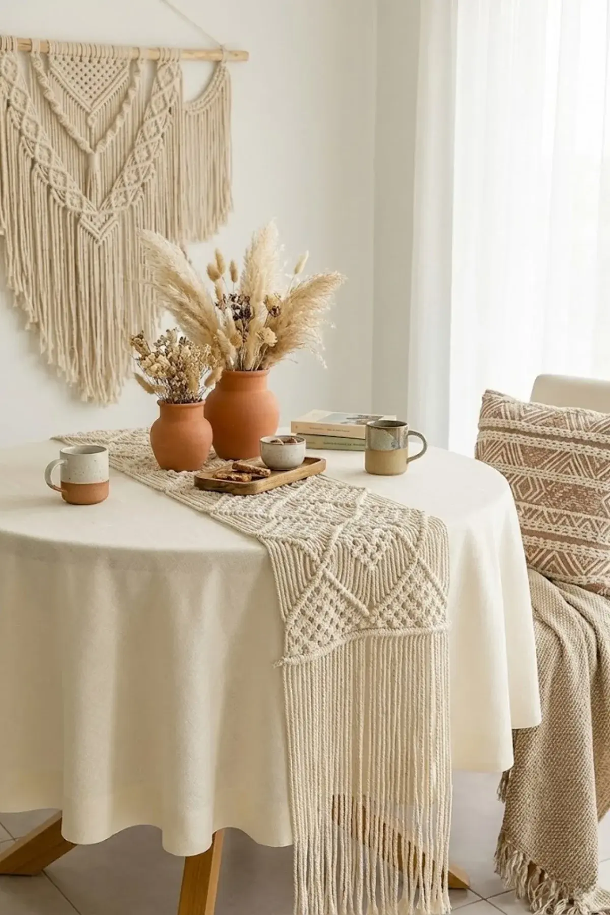 Gardenya Ekru/krem Keten Dokulu Masa Örtüsü