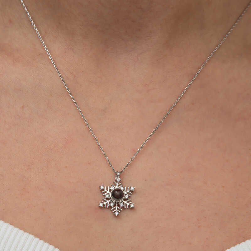Gümüş 100 Dilde Seni Seviyorum Kar Tanesi Kadın Kolye