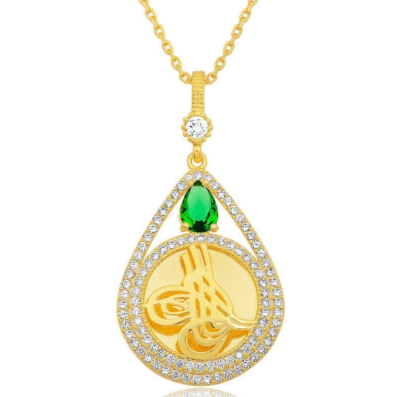 Gümüş Gold Kaplama Damla Tuğralı Kadın Kolye
