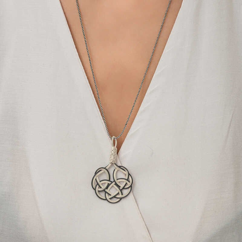 Gümüş Kazaziye Örgü Kadın Kolye