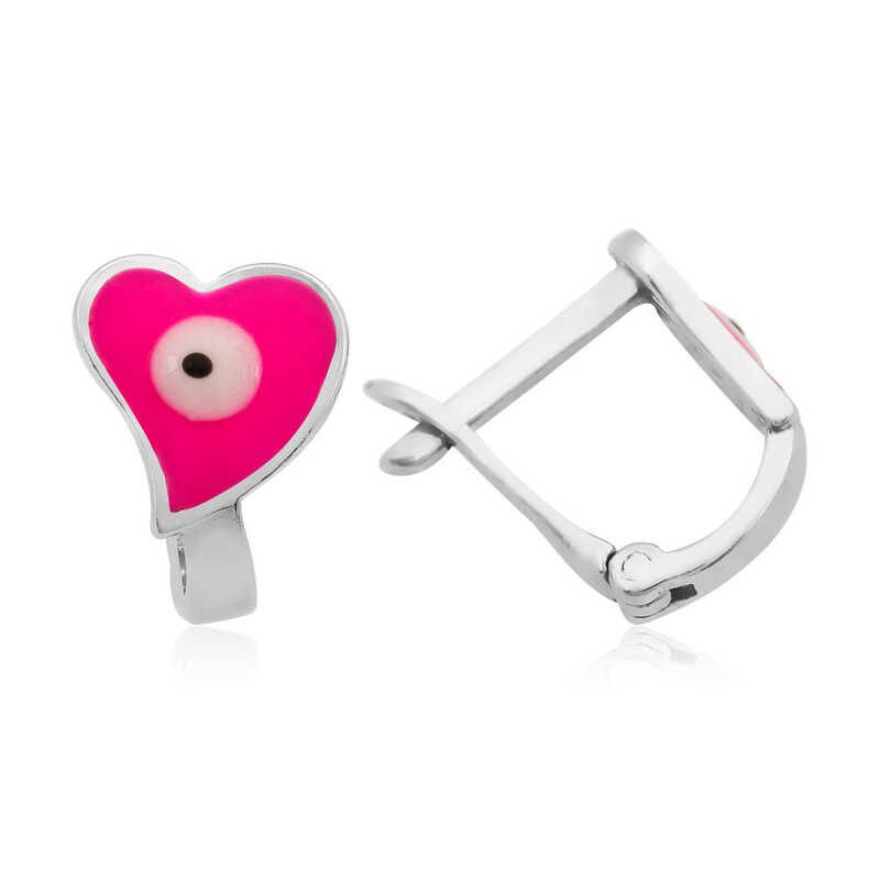 Gümüş Pembe Kalp Çocuk Küpesi