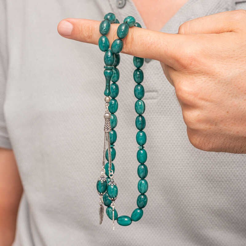 Gümüş Püsküllü Sıkma Kehribar Tesbih
