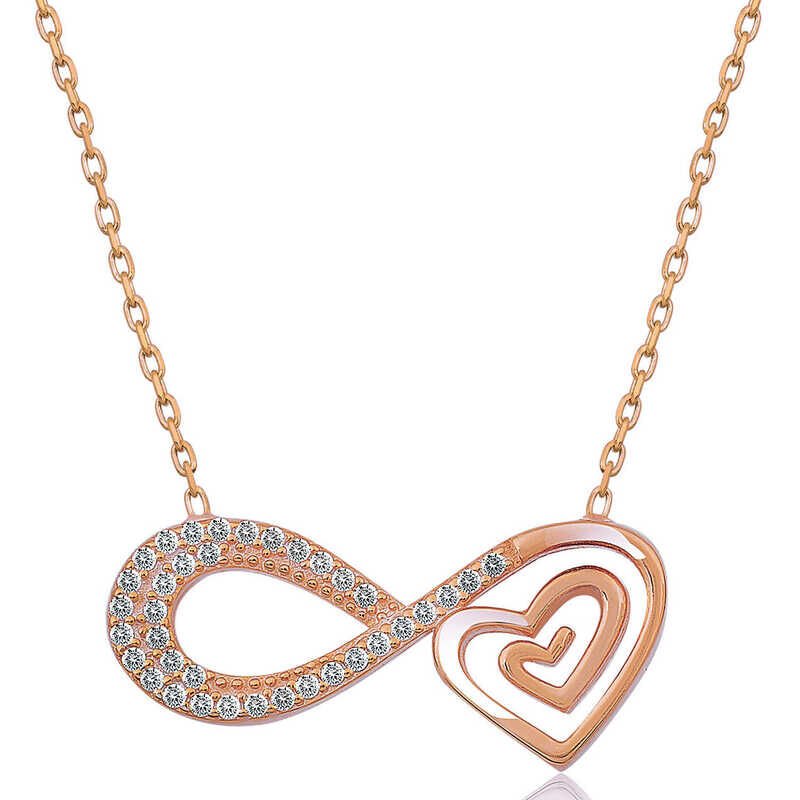 Gümüş Rose Kalpli Sonsuzluk Kadın Kolye