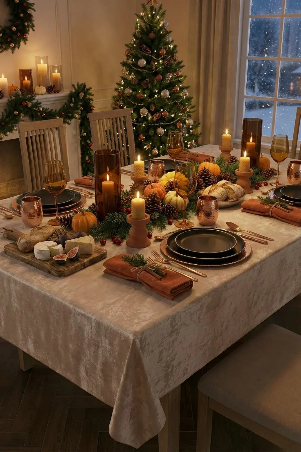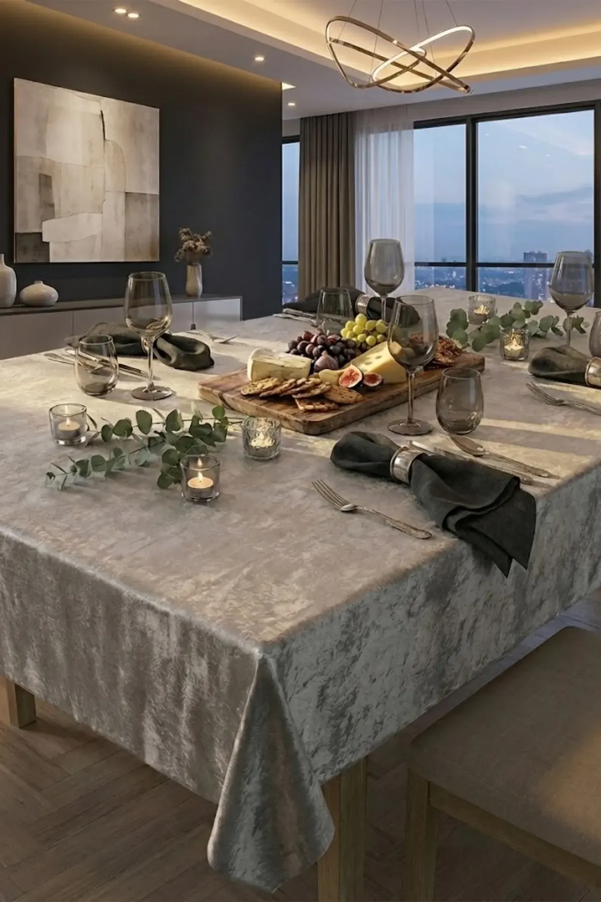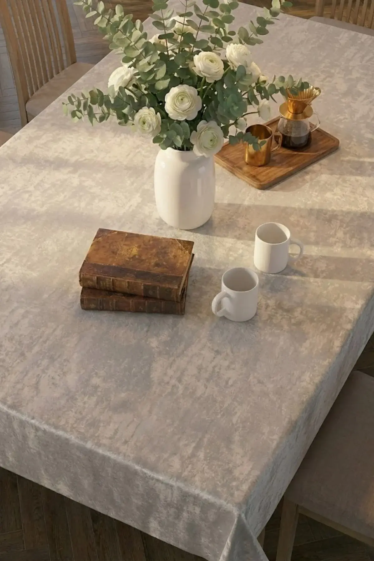 Kadife Keten Dokulu Masa Örtüsü