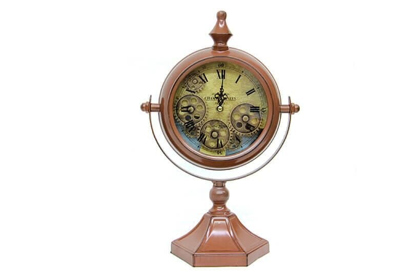 Masaüstü Mat Kahve Çarklı Saat Roma Rakamlı Köstek Modeli