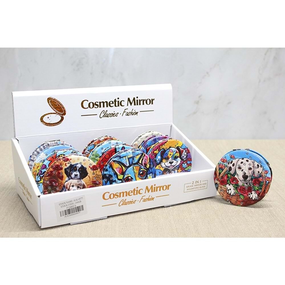 Sevimli Köpek Tasarımıyla Taş İşlemeli İnce El Aynası Yuvarlak