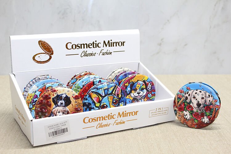 Sevimli Köpek Tasarımıyla Taş İşlemeli İnce El Aynası Yuvarlak