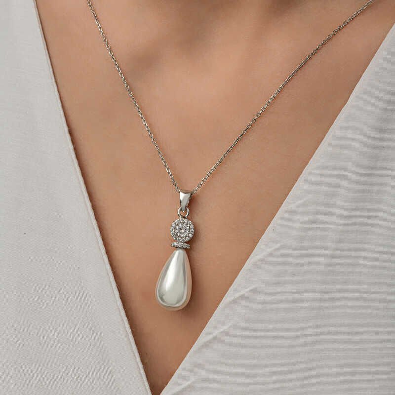 925 Ayar Gümüş Damla İnci Kadın Kolye