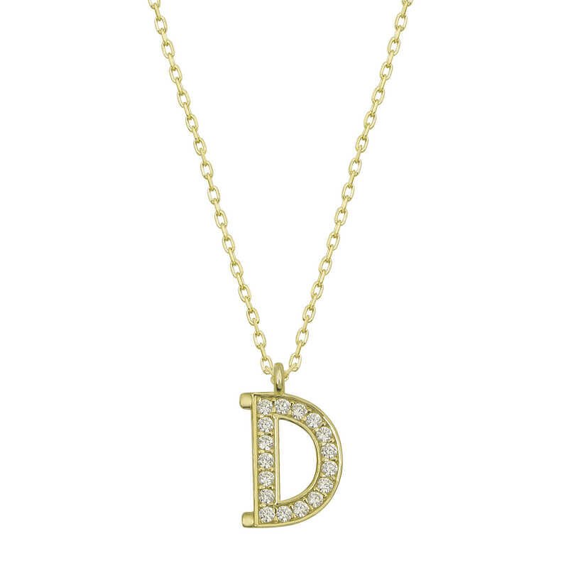 925 Ayar Gümüş Gold D Harfi Kadın Gümüş Kolye T6610