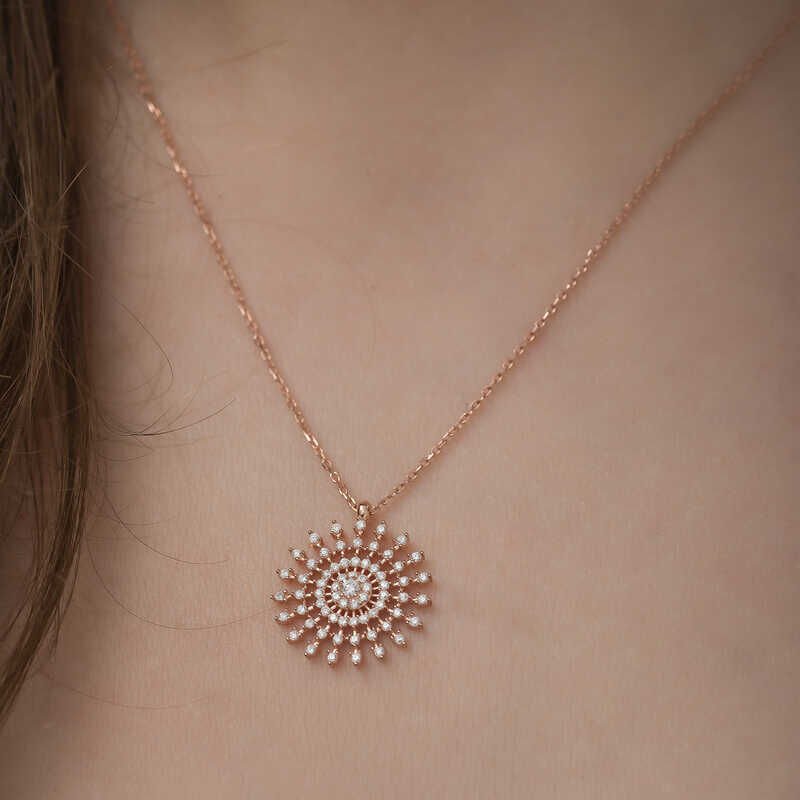 925 Ayar Gümüş Güneş Kadın Gümüş Kolye