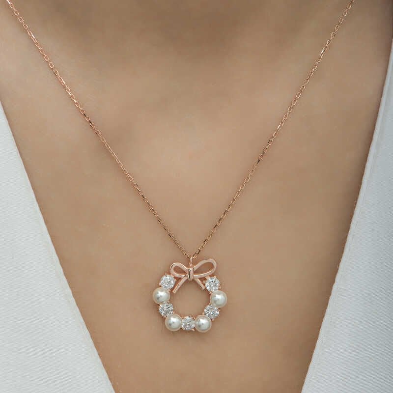 925 Ayar Gümüş İnci Kurdele Kadın Gümüş Kolye