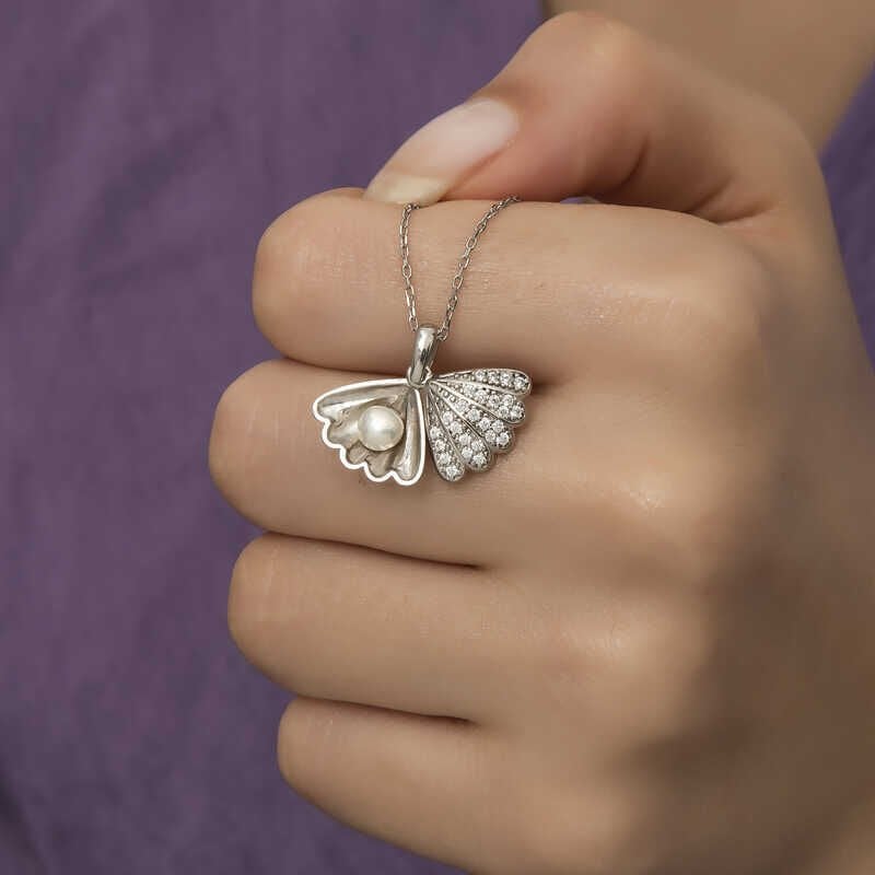 925 Ayar Gümüş İncili İstiridye Bayan Gümüş Kolye
